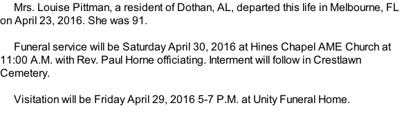 Cover for Louise Pittman's Obituary
