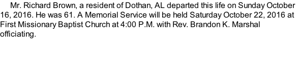 To order memorial trees or send flowers to the family in memory of Richard Brown, please visit our flower store.